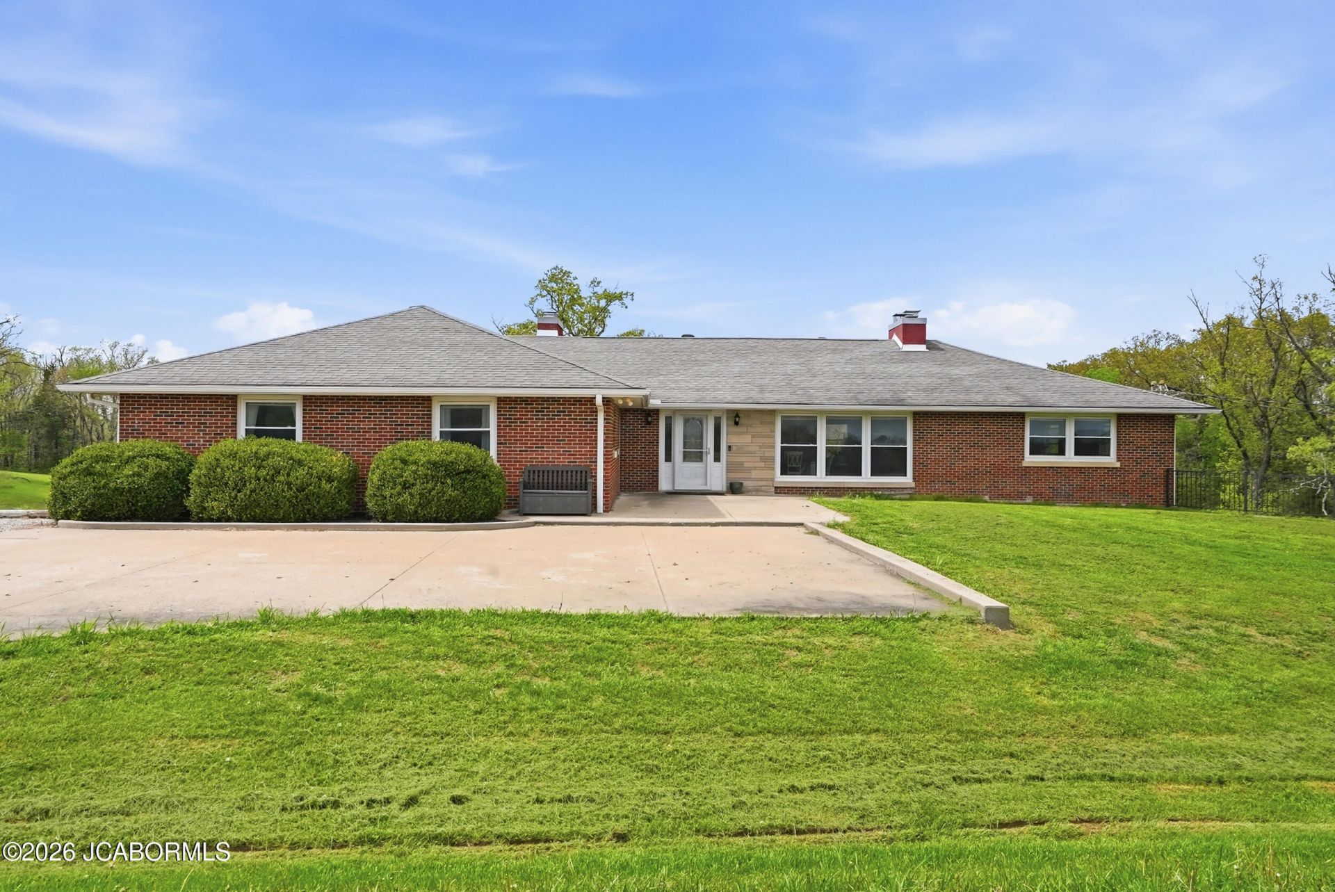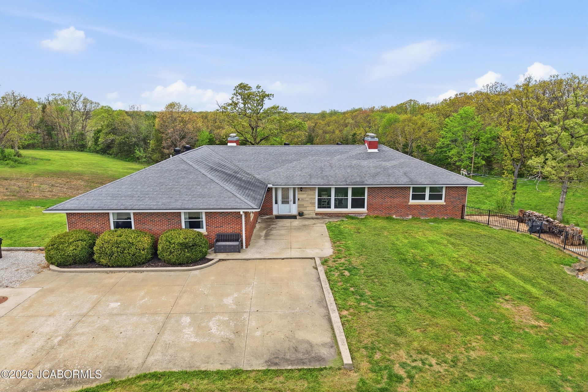 An entertainers' dream home! Sitting pretty on 5.6 acres, this prestigious brick rancher was designed with an open, flowing floor plan built for gatherings. With 5 beds, 3 baths and over 4,700 square feet you will not run out of space here! Featuring tons of hardwood throughout the main floor, a see-through fireplace looking into the sunken living room and an island in the kitchen large enough for 10. The recently finished lower level is also large and in charge featuring a massive living room with more than enough room for a pool table, a theatre area, a kitchenette, full bathroom and a large bedroom. You'll be disappointed if you miss out on this one!