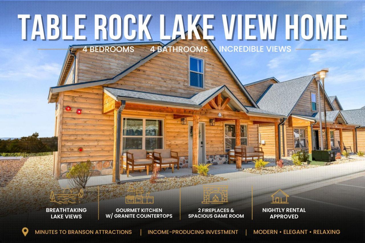 This breathtaking 4-bedroom, 4-bathroom home offers unparalleled lake views and a perfect blend of modern elegance and serene comfort. Featuring a gourmet kitchen with granite countertops, a spacious game room, and two cozy fireplaces, this property is designed for relaxation and entertainment. The fresh, calming design creates a tranquil atmosphere, while the incredible views of Table Rock Lake set the stage for unforgettable moments.Located just minutes from all that Branson has to offer, this income-producing property is approved for nightly rentals, making it a fantastic addition to any investment portfolio. Whether you're looking for a luxurious retreat or a profitable rental opportunity, this property offers the best of both worlds. Don't miss out?schedule a showing today and make this stunning home yours!