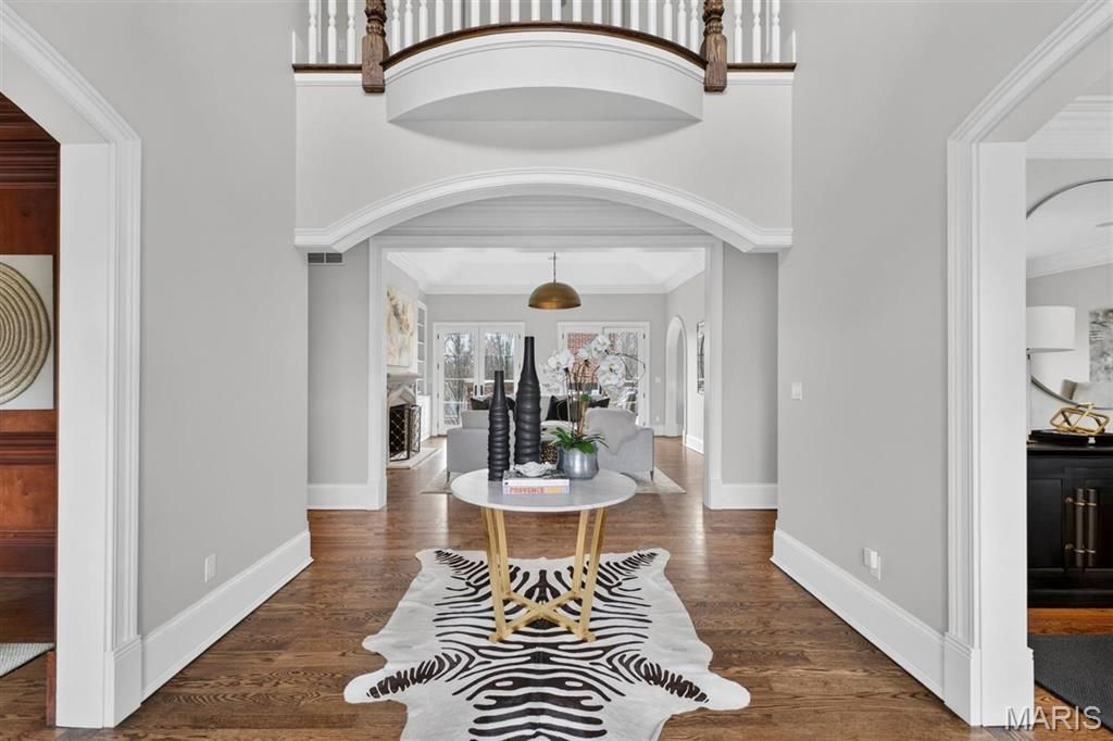 Discover this recently updated Ladue home, designed for luxurious living and entertaining. Step inside the inviting entry foyer, flanked by a wood-paneled den with a new custom stone fireplace and formal dining room boasting elegant French doors. The formal living room features a stunning wall of windows and doors that open to a back deck with adjacent wetbar making outdoor entertaining and dining in front of the outdoor fireplace a breeze. The gorgeous kitchen is the heart of the home, with hearth and breakfast rooms surrounded by windows that fill the space with natural light. The main floor primary suite offers a cozy fireplace and spacious his and her closets. Upstairs, four large bedroom suites provide comfort and privacy, including one with its own fireplace. The lower level impresses with a glass-enclosed wine cellar and tasting area, walk-behind wetbar, gym, golf simulator, theater, and a rec room opening to a covered patio overlooking the sparkling pool. A light-filled guest bedroom and convenient laundry rooms on both the main and second floors complete this exceptional property