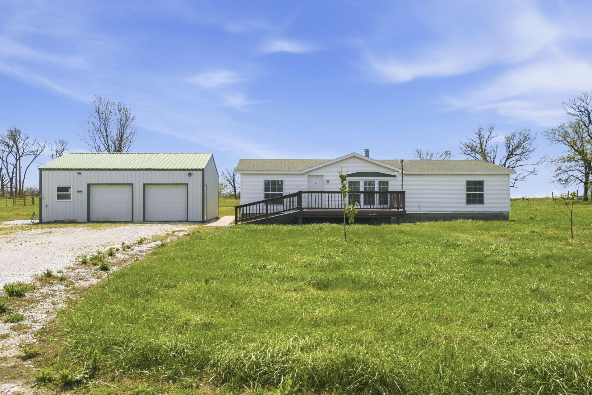 Move in ready 3 bedroom, 2 bathroom home situated on 20.55 scenic acres in La Russell. This inviting property offers a spacious living room highlighted by a beautiful stone fireplace and an open floor plan that flows seamlessly into the kitchen. The kitchen features warm wooden cabinets, stainless appliances, and an attached dining area with sliding door access to the back deck, creating a functional space for everyday living and entertaining. The primary bedroom includes a walk-in closet and a private bathroom with a walk-in shower. Two additional bedrooms share a full hall bathroom with a shower and tub combination. Step outside to enjoy the partially covered back deck overlooking the peaceful acreage. The property is well equipped with a detached two car garage or shop, a tall carport suitable for RV or boat storage, two storage sheds, and an additional covered parking area that could also serve as an animal enclosure. Solar panels help keep utility costs low, adding efficiency to this already impressive property. This is a great opportunity to enjoy country living with space, functionality, and comfort.